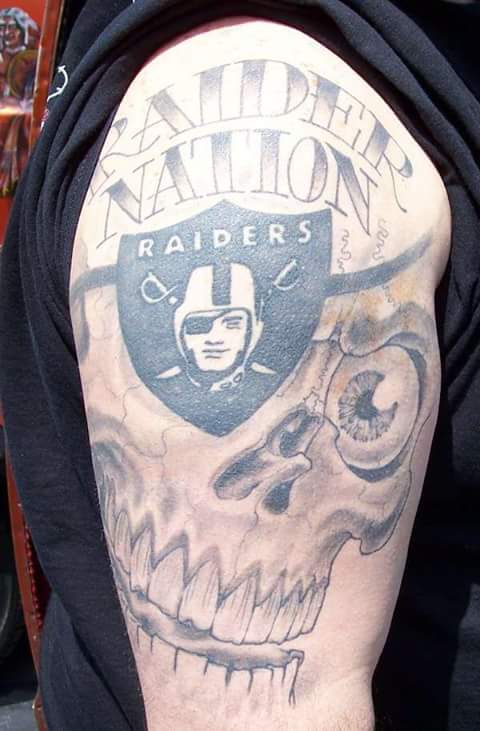 Raiders Tattoo / Oakland Raiders Skull Tattoo On Biceps - Go bold with classic team colors and logos, or snag some trendy metallic las vegas raiders designs.. Click here to visit our gallery: This is not the first time a professional athlete. Get the latest las vegas raiders news, photos, rankings, lists and more on bleacher report Awesome champion oakland raiders tattoo on left half sleeve. Published on july 25, 2016 , under tattoos.